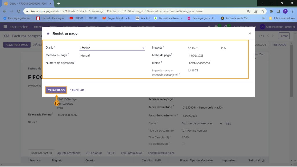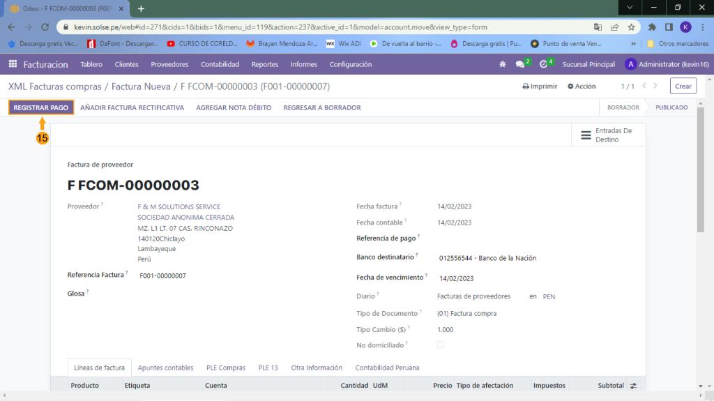 15) Si ya está esta pagada la factura, damos clic en "Registrar pago".