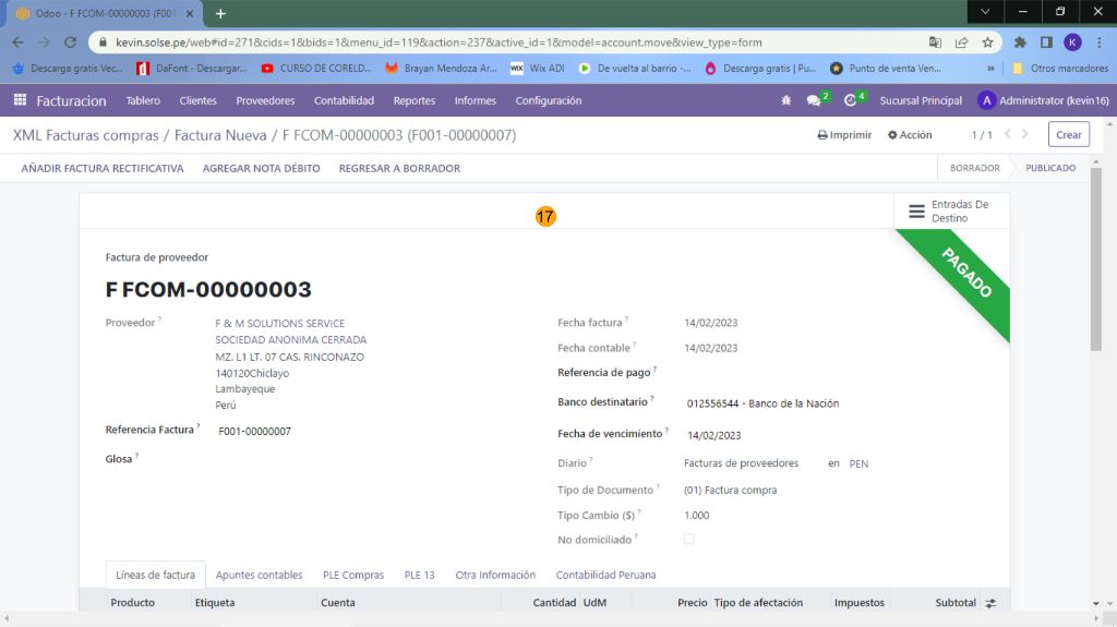 17) Ya estará la factura pagada, podemos observar que se ha creado con toda normalidad.