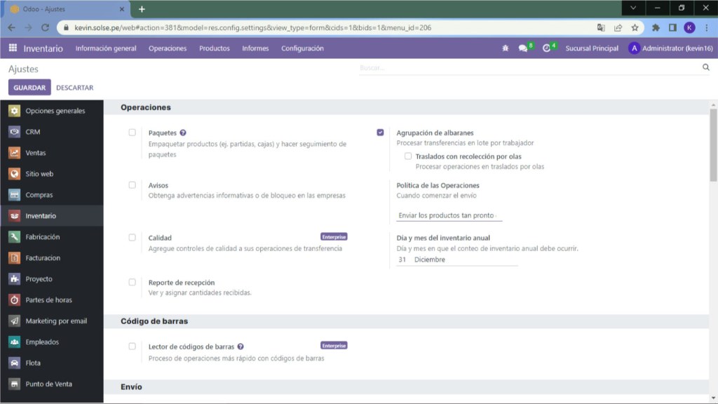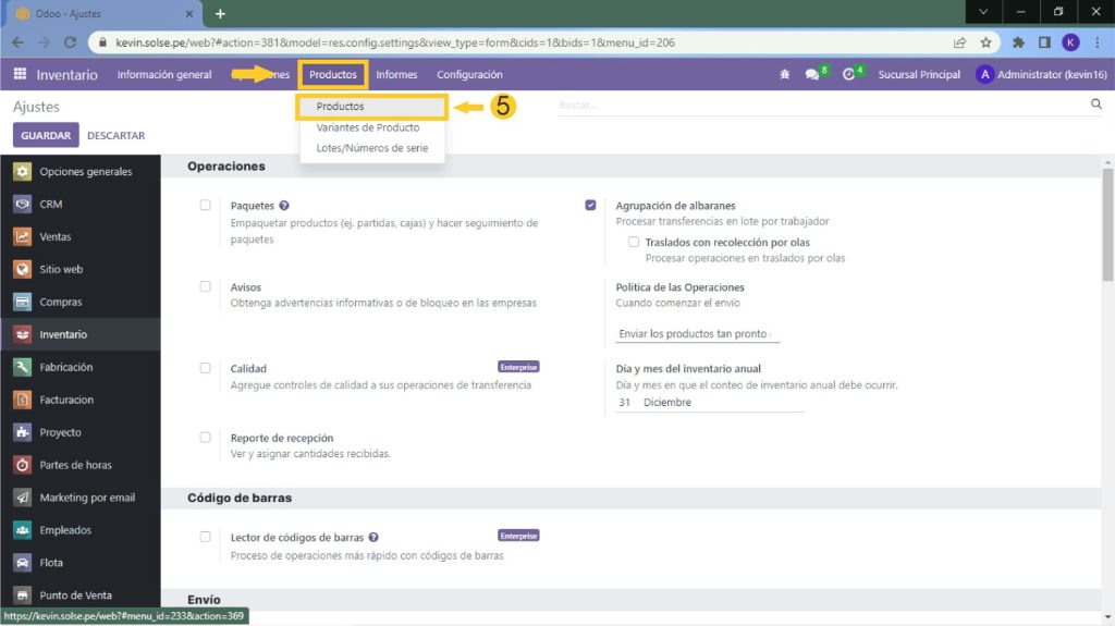 1) Nos dirigimos al módulo de Inventario.