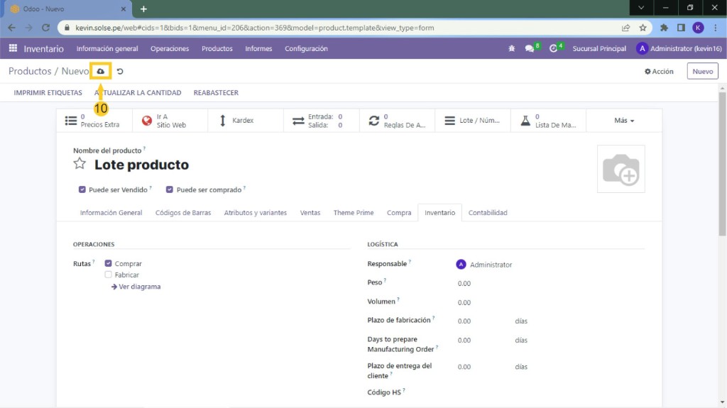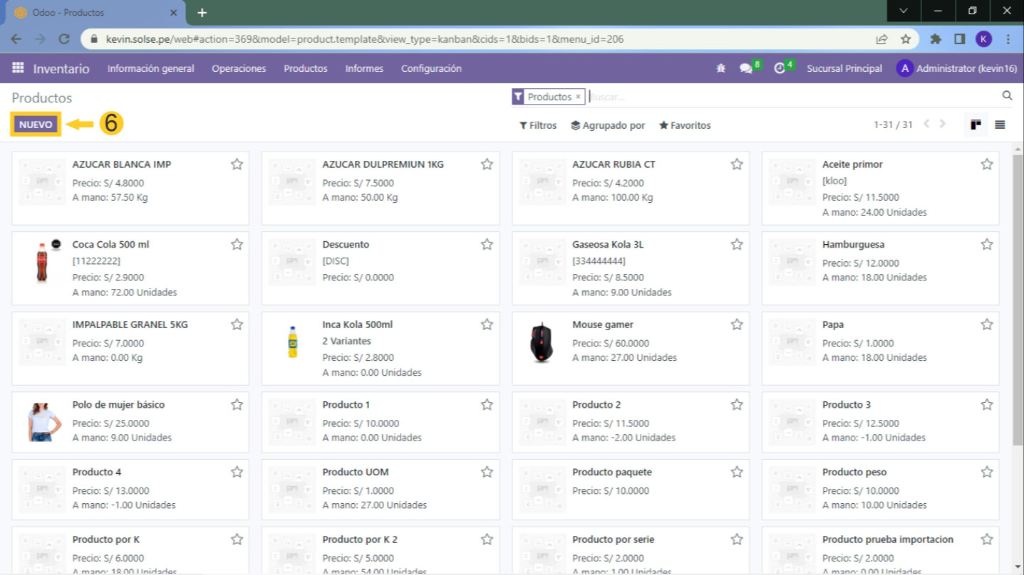 6) Vamos a crear un nuevo producto para ver cómo se puede crear desde cero un producto con seguimiento por serie único, damos clic en "Nuevo".