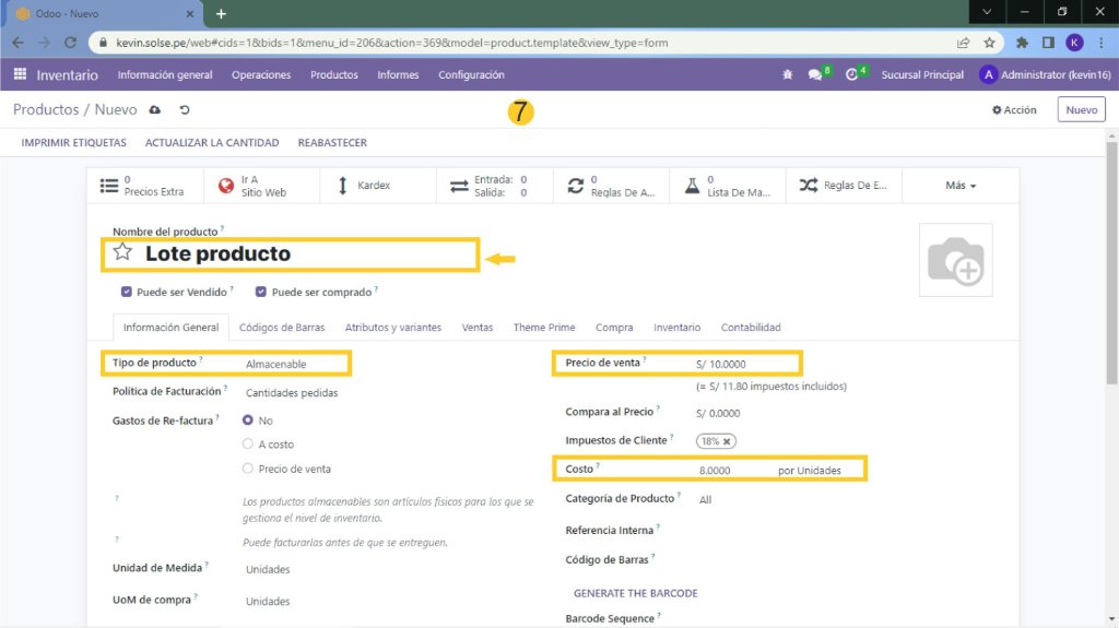 7) Vamos a crear un producto con estas características.