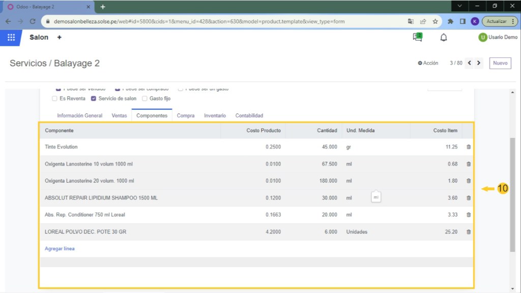 10) Podemos colocar los componentes que se llevara en ese servicio.
