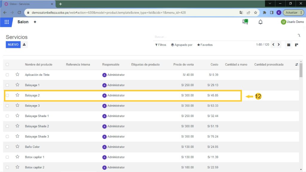 8) En el campo "Costo" Colocamos el costo del servicio.