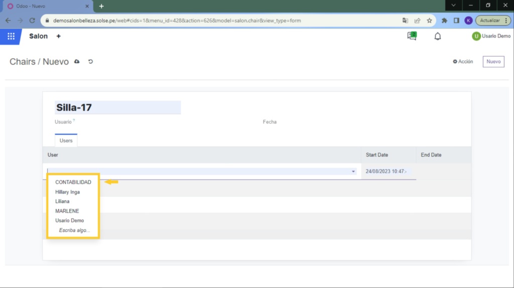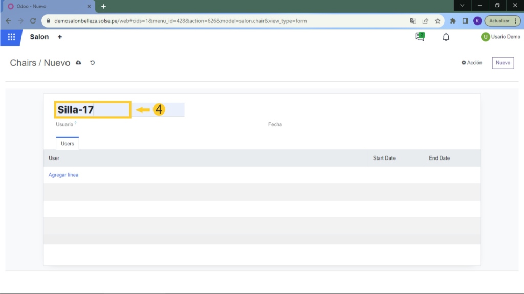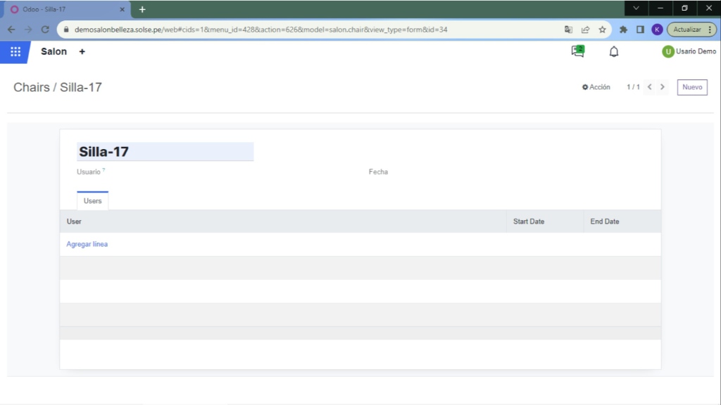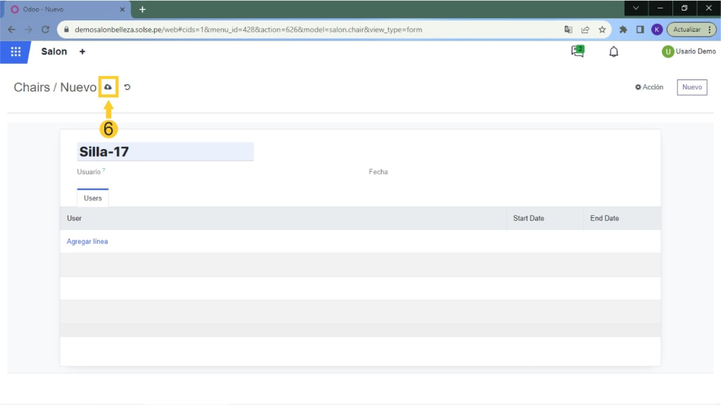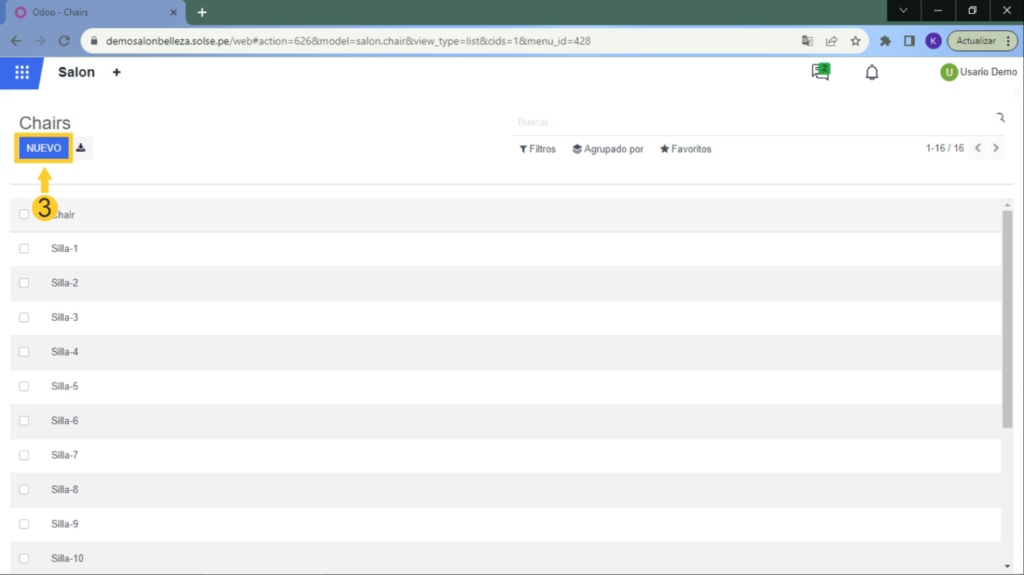 En esta oportunidad le vamos a enseñar como poder crear una silla para salón de belleza en el módulo de salón de belleza.