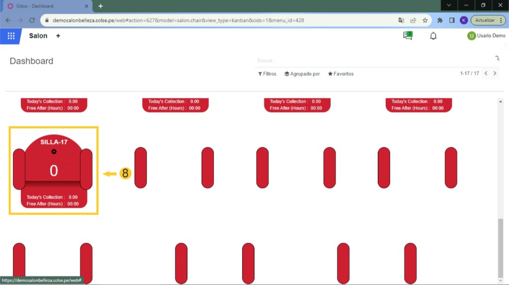 8) En el Dashboard observamos que nos aparece la silla que hemos creado y ya lo podemos reservar.