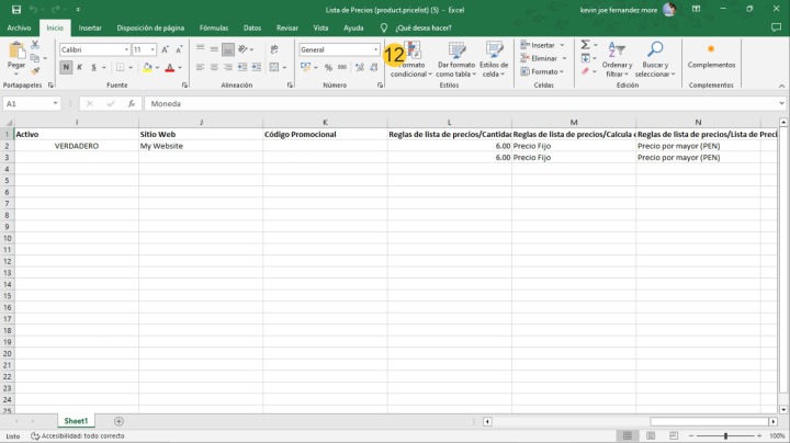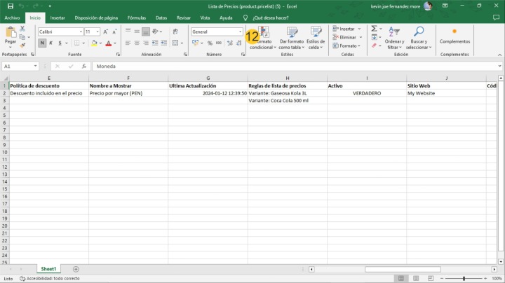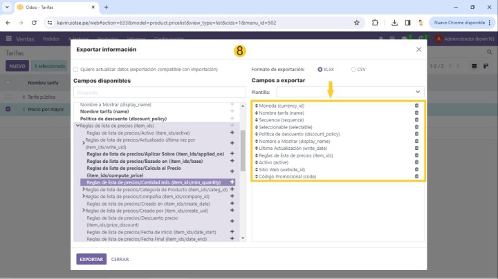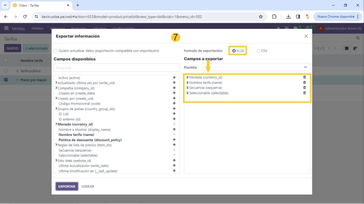 3) En esta ocasión esta lista de precio vamos a exportar.