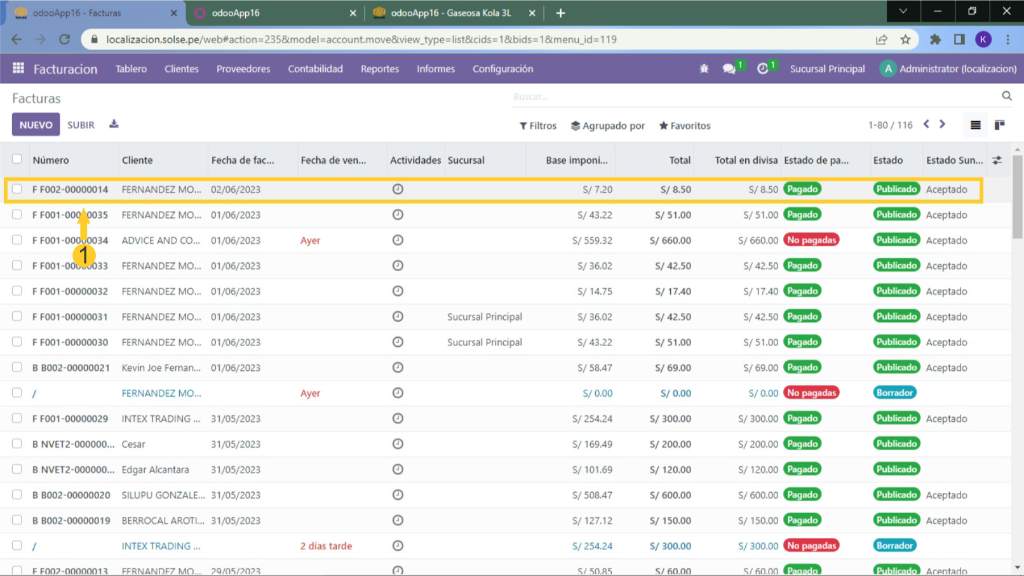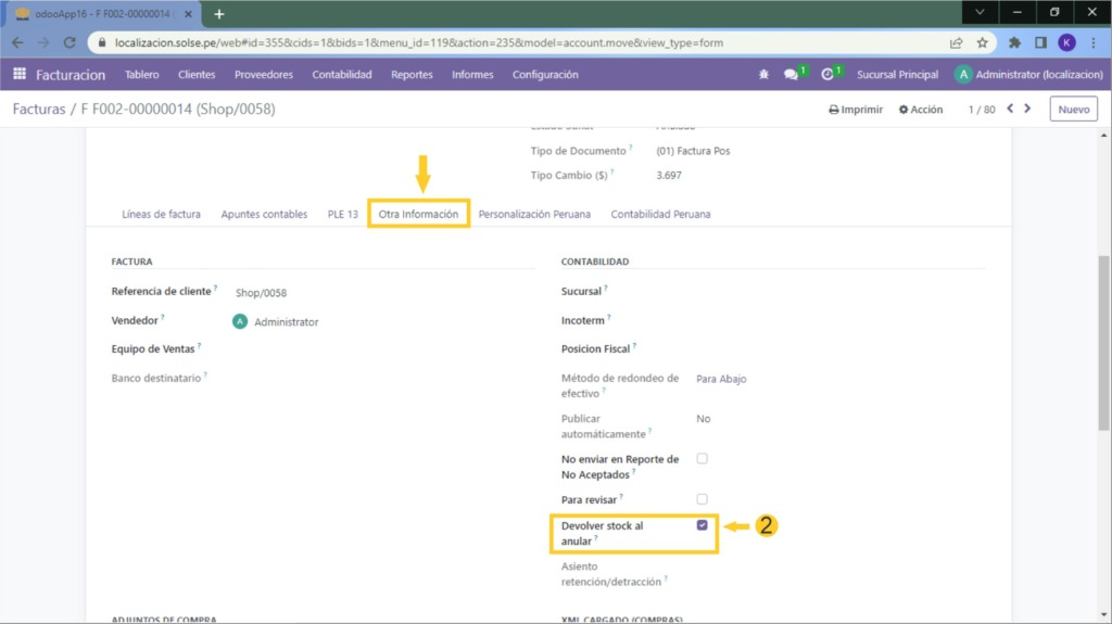 1) Nos dirigimos a la factura que deseamos anular y que se regrese el stock.