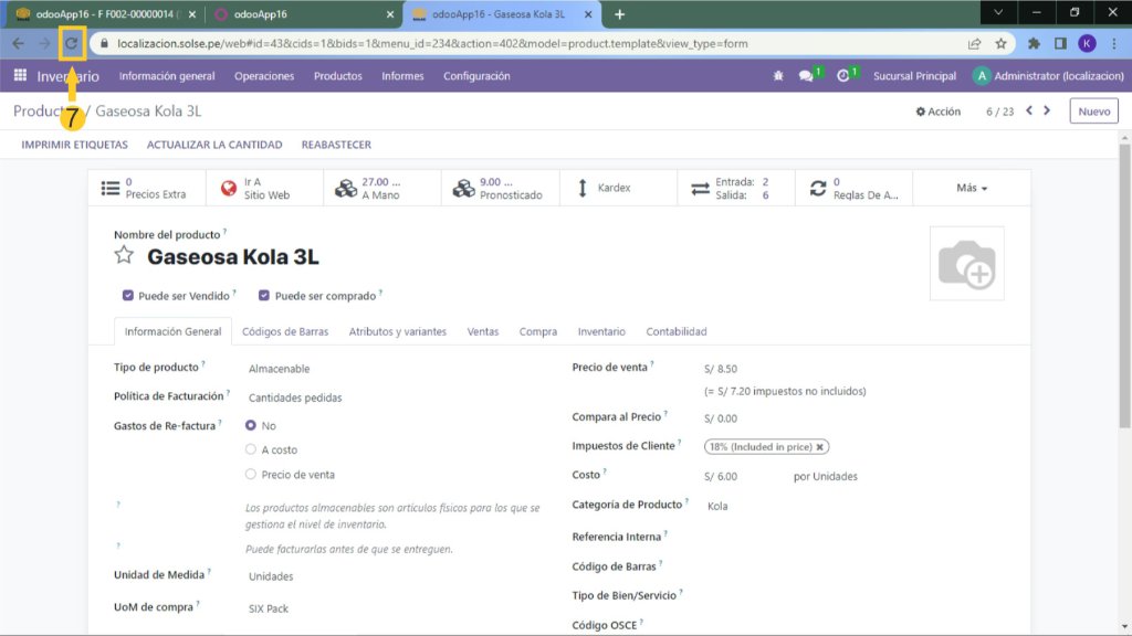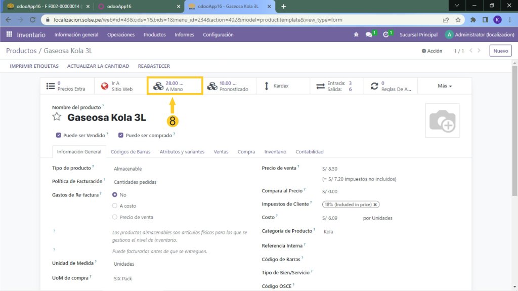 3) Podemos ver que tenemos 27 unidades a la mano de ese producto que tiene la factura.